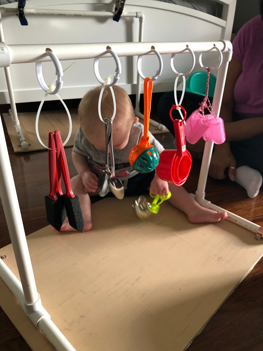 My stepfather created the Little Room and this tactile board for Finn based on some suggested tools and activities we received from the TVI