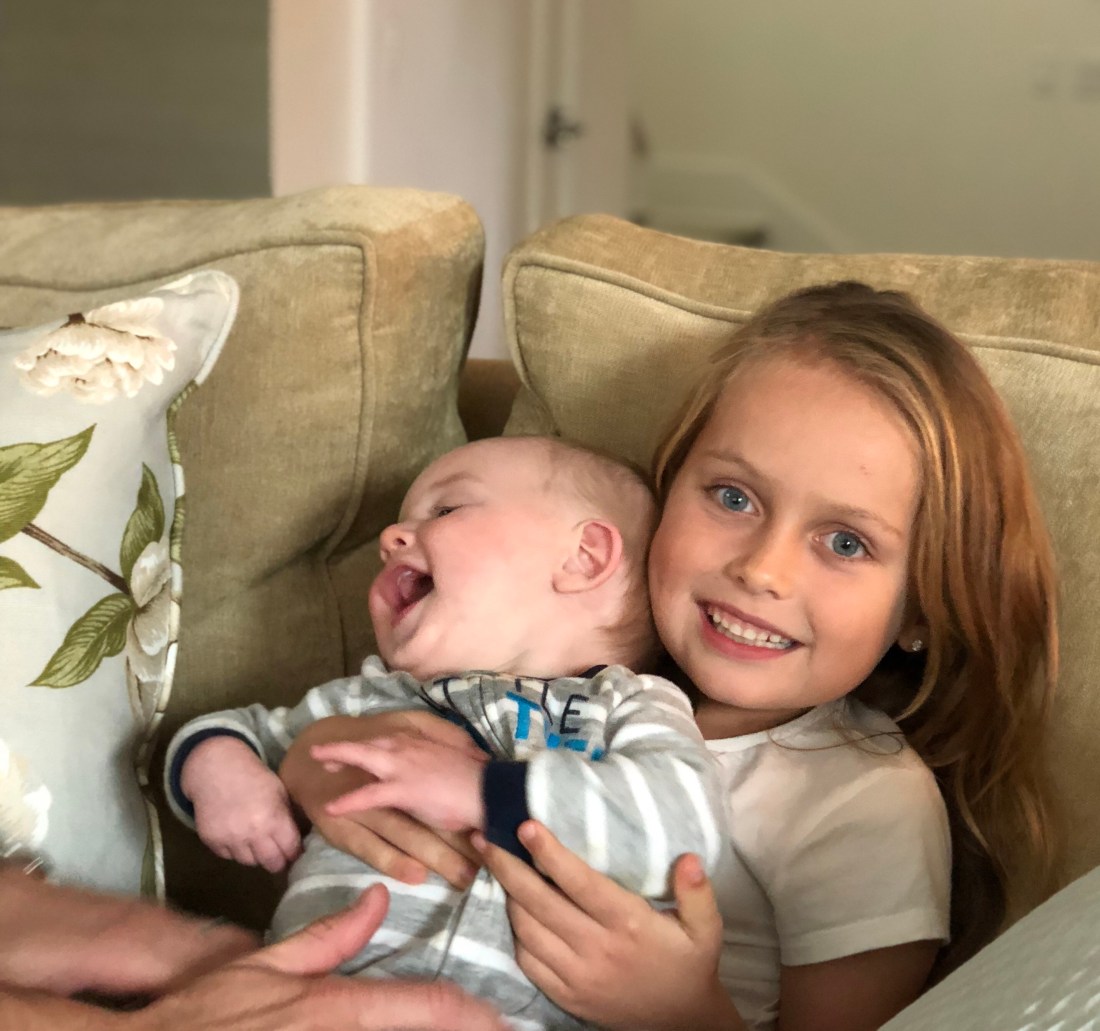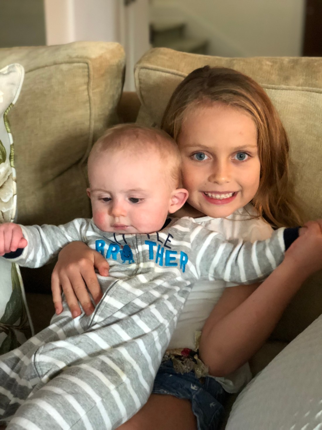 Finn has a big sister, Ariella, an amazing, spirited 6-year-old who is Patrick’s daughter from a previous relationship. She unfortunately lives all the way around the world in Australia which is why she is not a part of Finn’s, or our, day-to-day life, but she is very much an integrated part of our life and his. Our process to acceptance of the physical distance from, and my husband’s relentless efforts to ensure emotional closeness to, his daughter could certainly be its own blog topic. I introduce her in this blog now because she didn’t get to meet her baby brother for the first time until he was 9 months old. Patrick visits his daughter every three months, but she has only been able to visit us in the US a few times now.